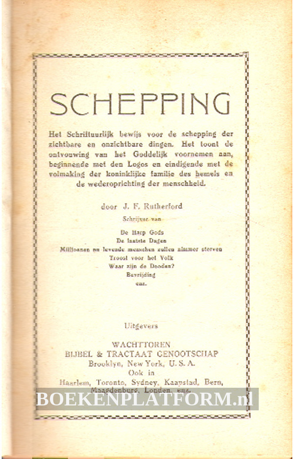 Auteur: Rutherford, J.F., Uitgever: Wachttoren, 349 pagina's, Ingenaaid in luxe gestempelde kaft, Nederlands, Gepubliceerd in 1927.