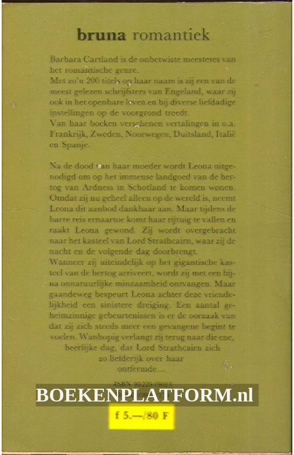 Auteur: Cartland, Barbara, Uitgever: Bruna A.W., 168 pagina's, Pocket paperback, Nederlands, ISBN: 9789022919026 (ISBN10: 9022919021), Gepubliceerd in 1980.