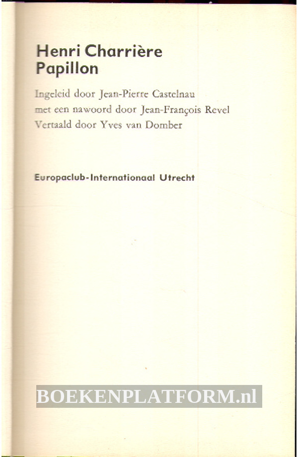 Auteur: Charriere, Henri, Uitgever: Europaclub, 508 pagina's, Gebonden met linnen kaft, Nederlands, Gepubliceerd in 1970.