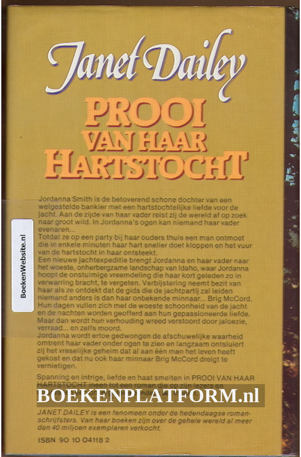 Auteur: Dailey, Janet, Uitgever: Zhu, 317 pagina's, Gebonden met linnen kaft en omslag, Nederlands, ISBN: 9789010041180 (ISBN10: 9010041182), Gepubliceerd in 1982.